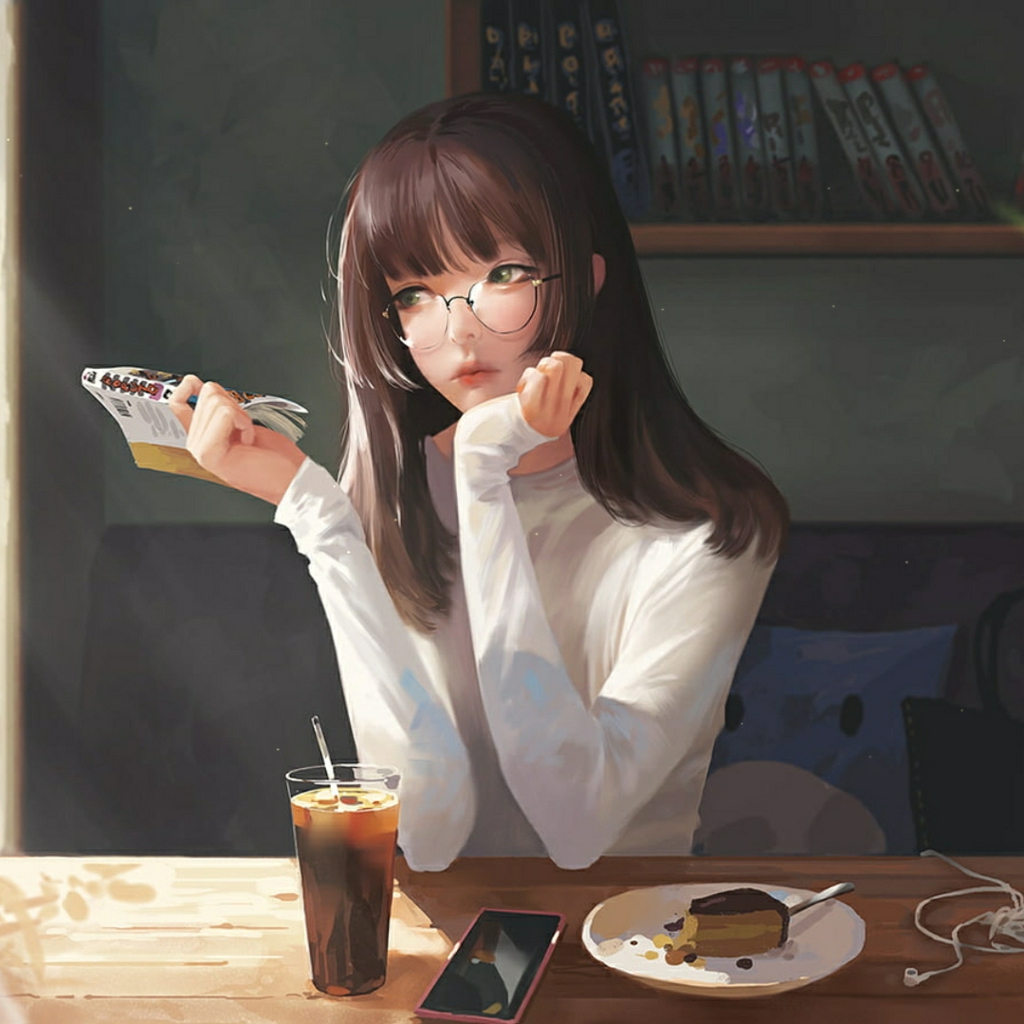 Download: girl with book drink ice tea