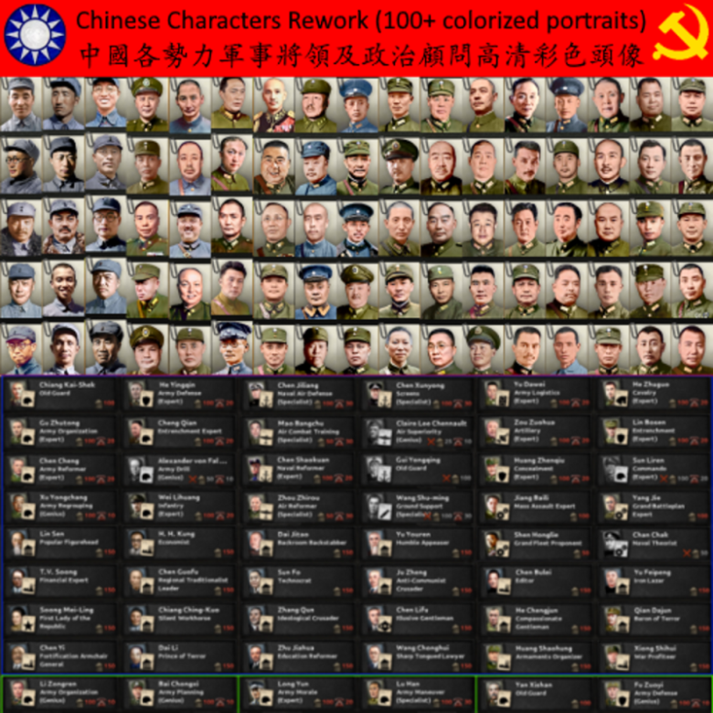 Download: Chinese Characters Rework - 100+ colorized portraits (Outdate) [Hearts of Iron IV]