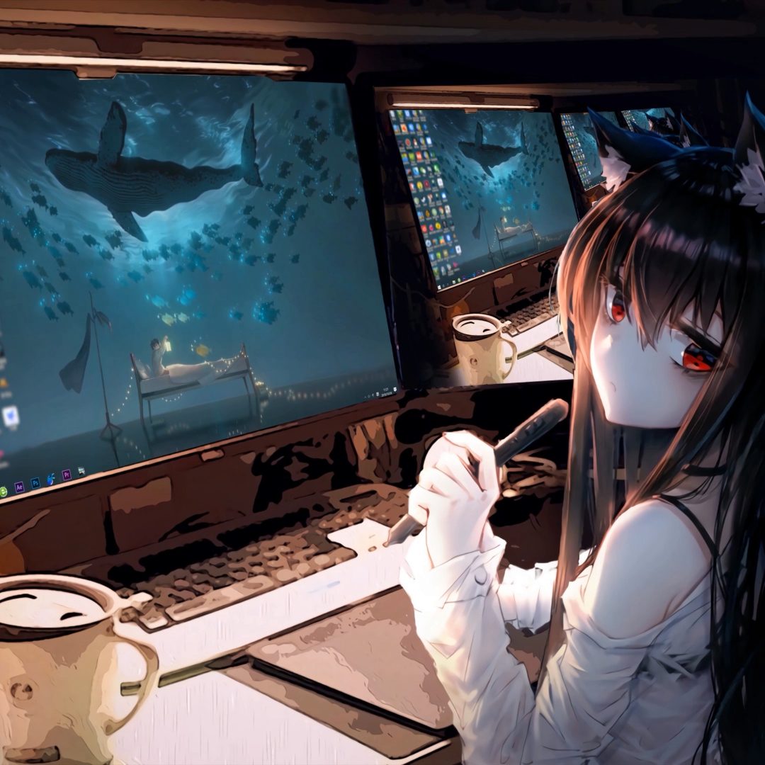 Download: Sea whale in my PC girl [Wallpaper Engine]