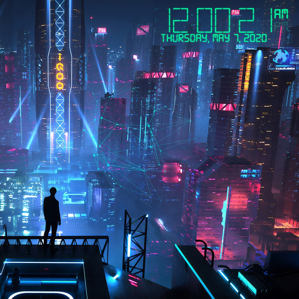 Download: CyberPunk City w/ Still clock [Wallpaper Engine]