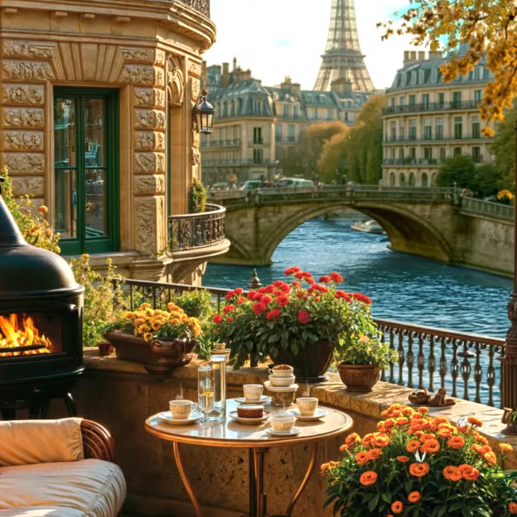 Download: Paris Morning Jazz Cozy Autumn Balcony Coffee by the Riverside with Smooth Jazz Music and Fireplace [1] [Wallpaper Engine]