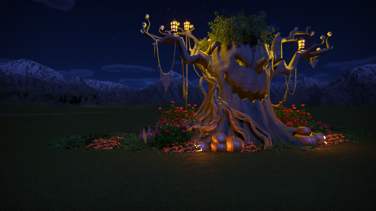Download: tree with skulls and pumpkins [Planet Coaster]