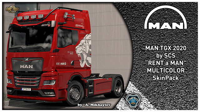 Download: 4K 8K MAN TGX 2020 "RENT a MAN" MULTICOLOR SkinPack [Euro Truck Simulator 2]