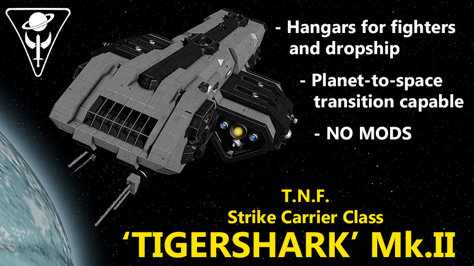 Download: T.N.F. Strike Carrier Class 'Tigershark' Mk.II [Space Engineers]
