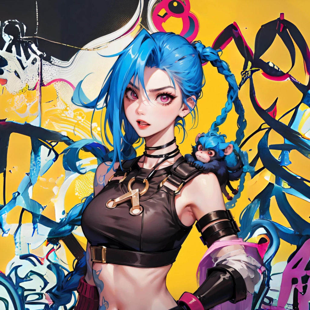 Download: anime girl jinx league of legends graffiti wall yellow [Wallpaper Engine]