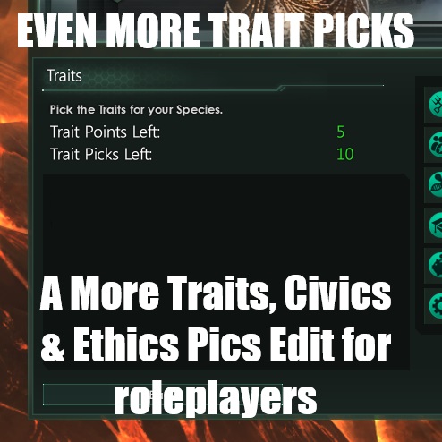Download: !!OUTDATED-DONUT USE!! Even More Trait Picks - 10 Trait Slots - More Traits, Civics, & Ethics Picks Edit (2.2.4) [Stellaris]