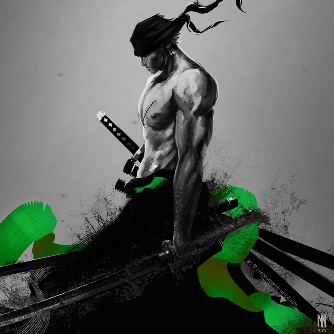 Download: Zoro with Sword Particles (Black and White with Green Stripes) [Wallpaper Engine]