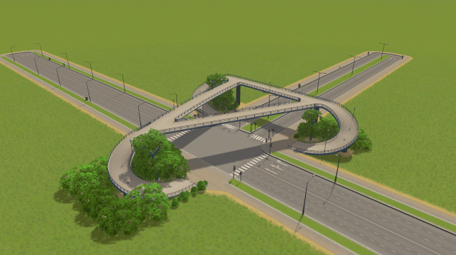 Download: Pedestrian Overpass Medium to Large Road T-Intersection Overpass by Populous [Cities: Skylines]