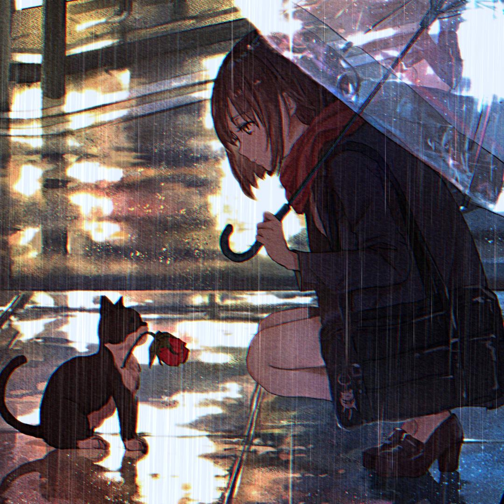 Download: Cat and Girl in the rain [Wallpaper Engine]