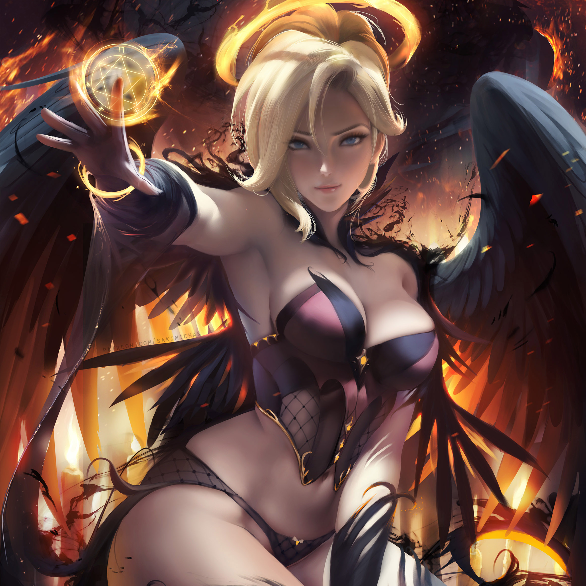 Download: Mercy, Halloween Dark Angel (X-Ray & Mouse Trail wOptions) Sakimichan [Wallpaper Engine]