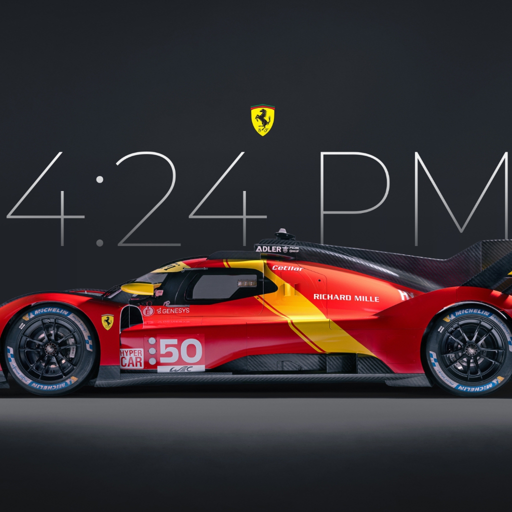 Download: Ferrari 499P Clock Wallpaper - Dark Version [Wallpaper Engine]