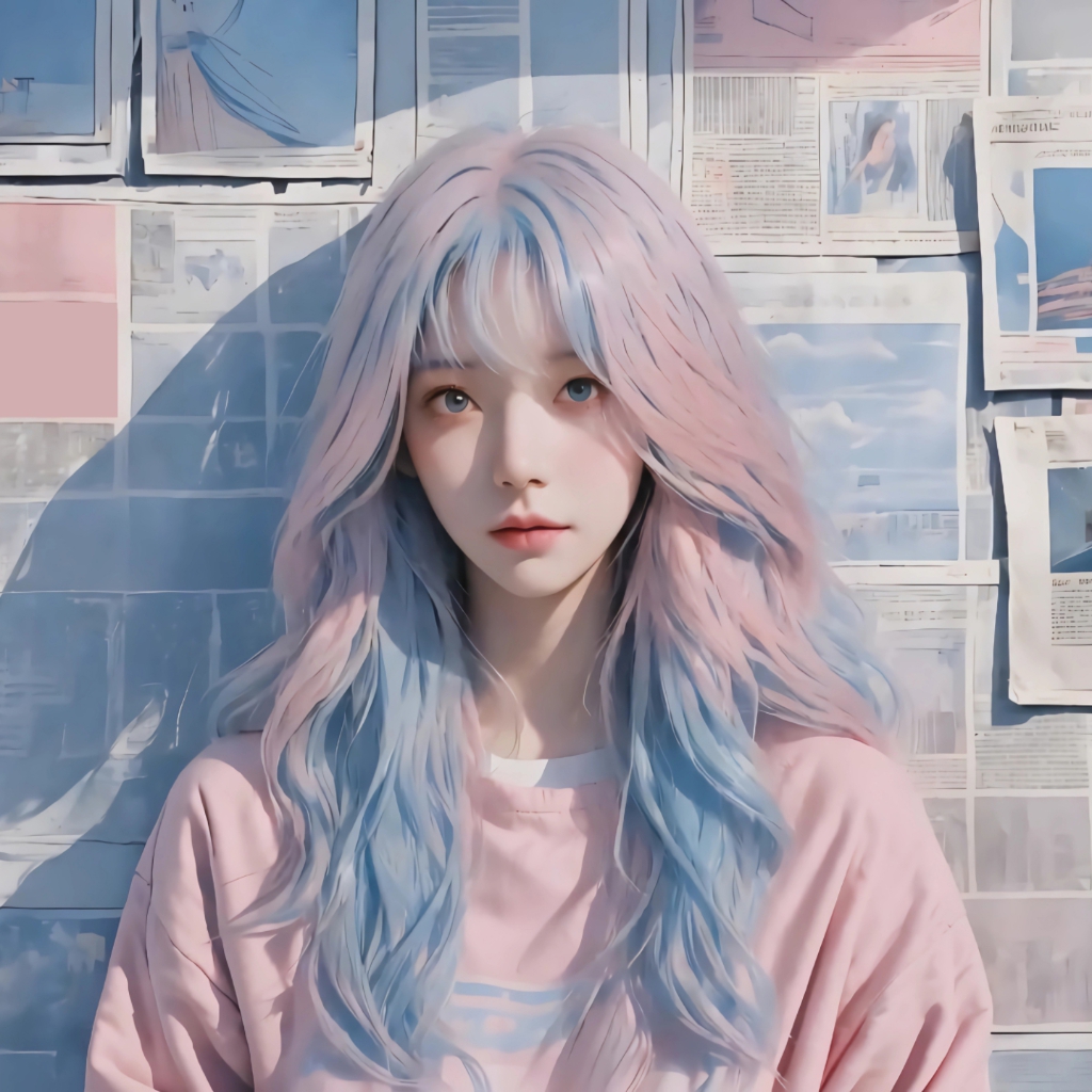 Download: 报纸墙 粉红蓝色长头发少女【4k】 [Wallpaper Engine]