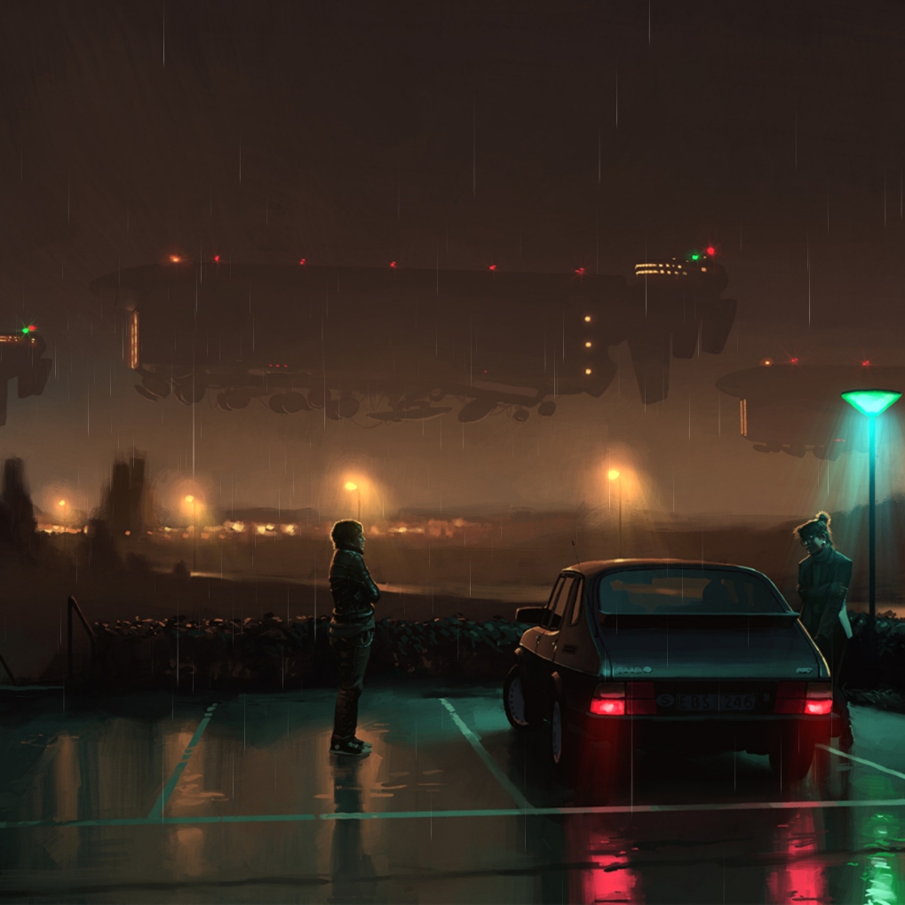 Download: Retro-futurism city at night in Sweden by Simon Stålenhag [Wallpaper Engine]