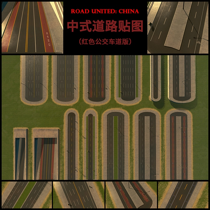 Download: Roads United: China BLP 中式道路贴图(红色公交车道版) [Cities: Skylines]