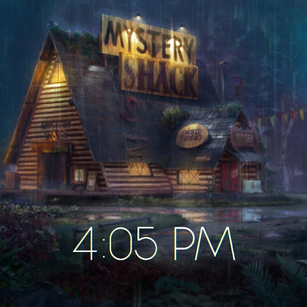 Download: Gravity Falls Mystery Shack (w/ clock, fog, rain & song audio) [Wallpaper Engine]