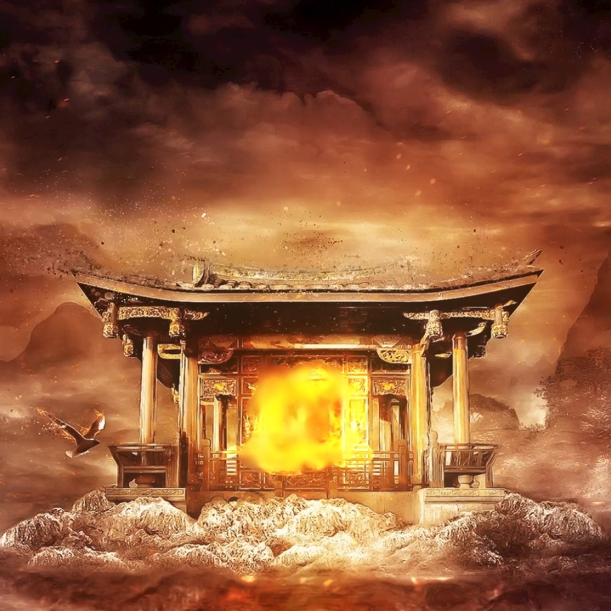 Download: Temple Fire Mountains Birds Flying Water [Wallpaper Engine]