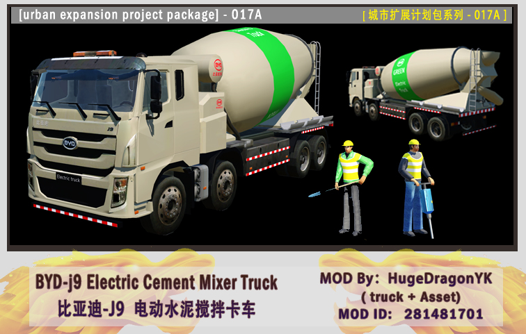 Download: (BYD-J9) Electric Cement Mixer Truck / 比亚迪J9-电动水泥搅拌车 [Transport Fever]