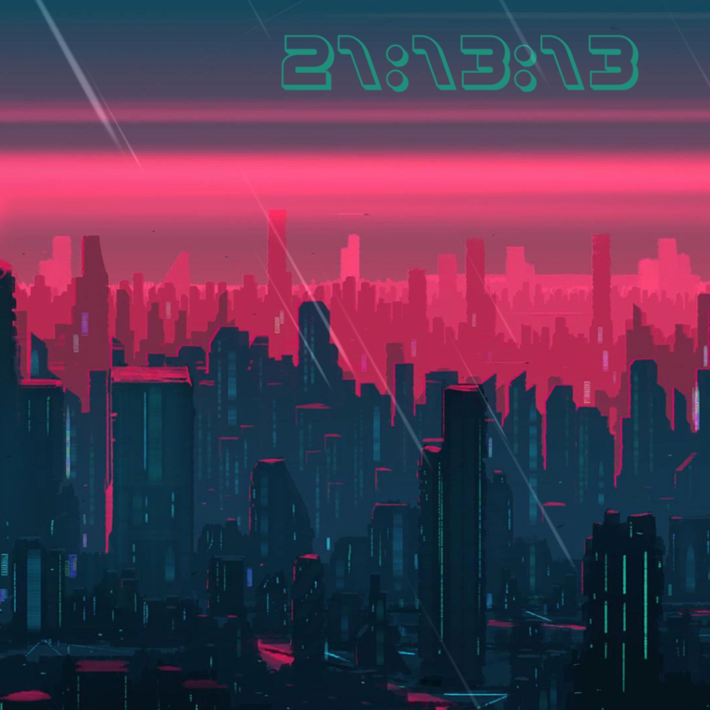 Download: Futuristic City w/ Clock (24h w/ seconds) [Wallpaper Engine]