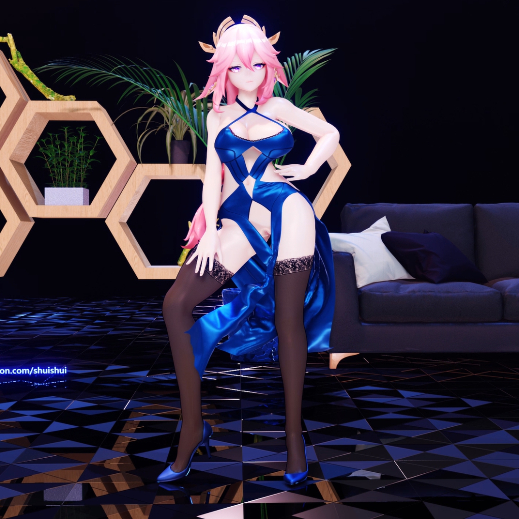 Download: MMD〜黑丝八重神子大兔兔布料 3k [Wallpaper Engine]