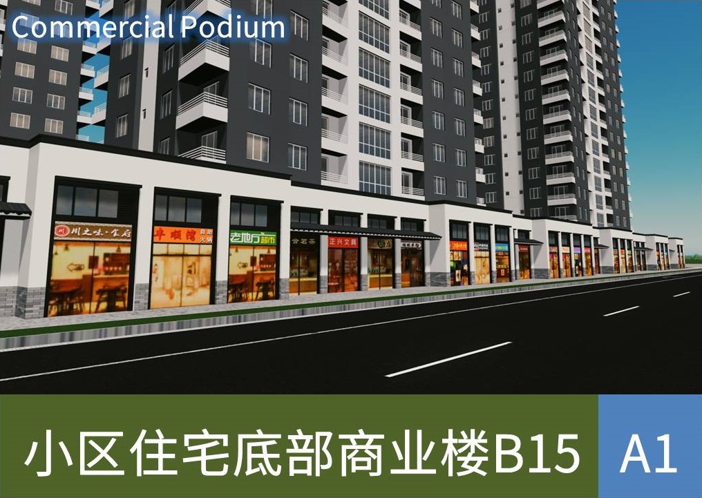 Download: 小区住宅底部商业楼/Commercial Podium B15A1 [Cities: Skylines]