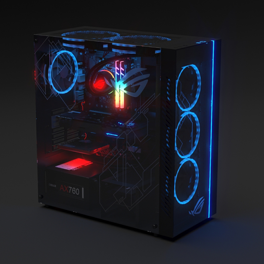 Download: PC blue and red lights (music on) [Wallpaper Engine]