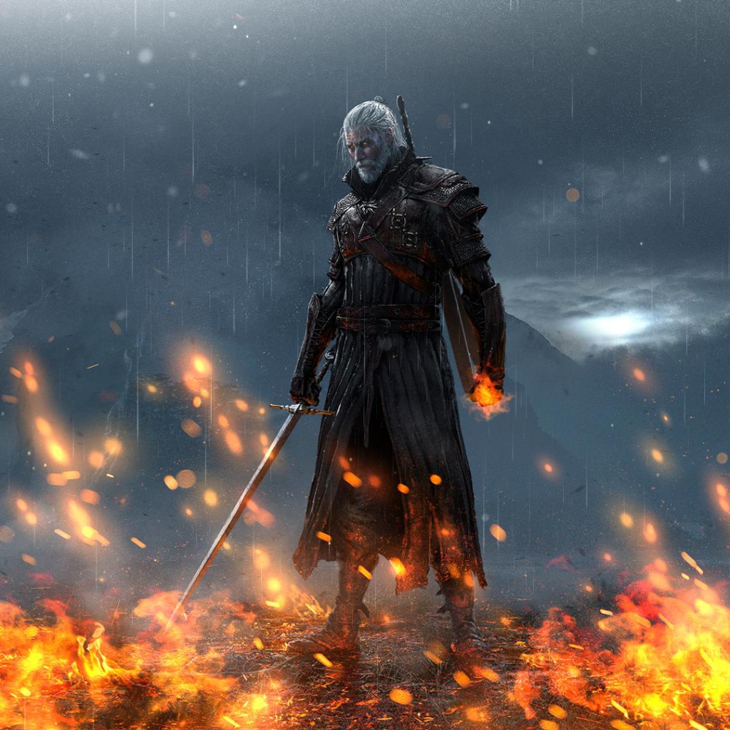 Download: Geralt standing in fire (with Hunt or be Hunted OST) [Wallpaper Engine]