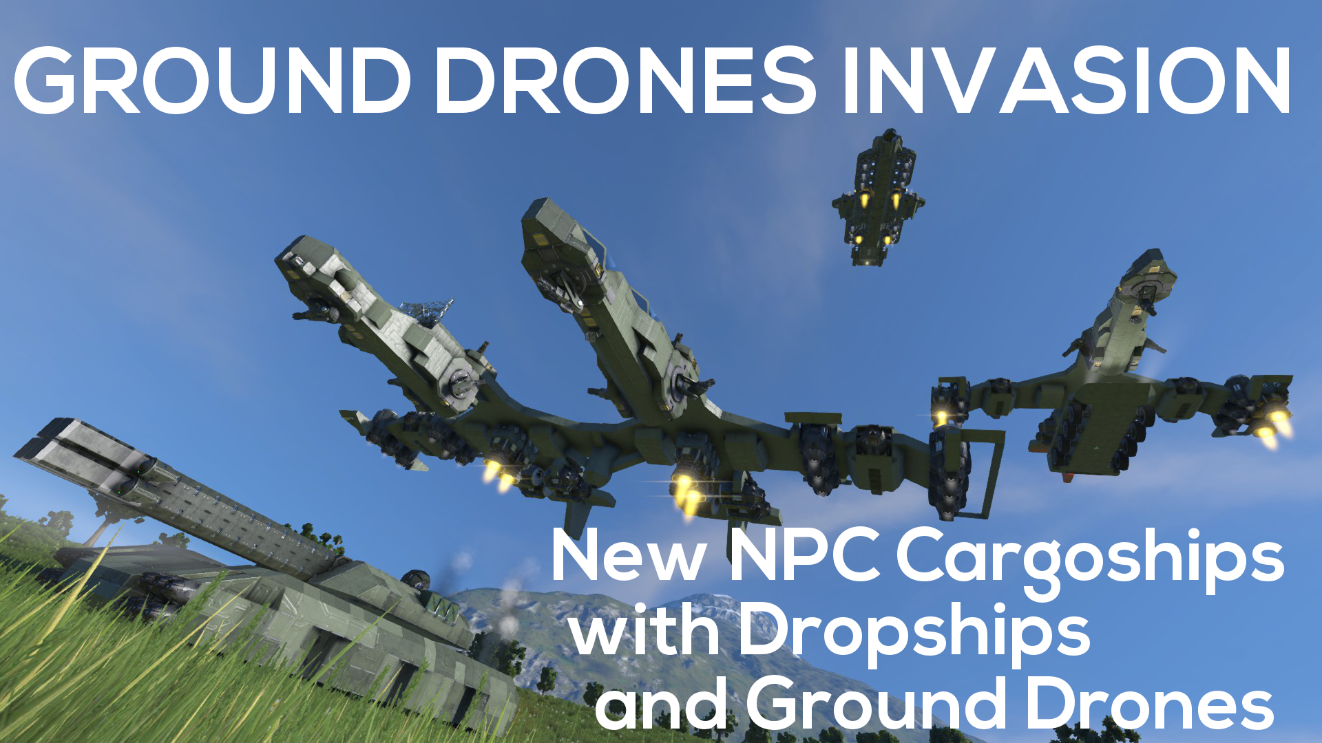 Download: Ground Drones Invasion - New Cargoships with Dropship and Ground drones. [Space Engineers]
