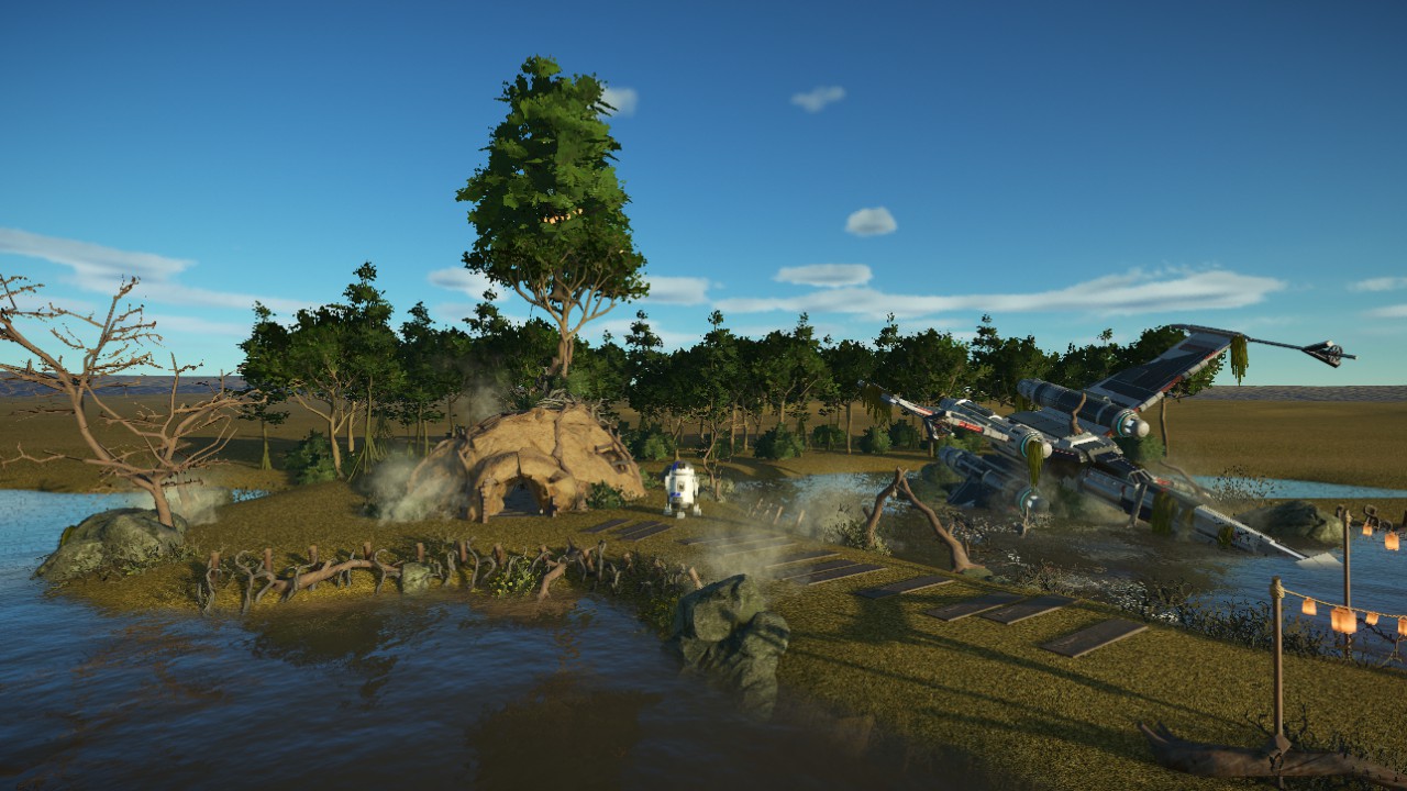Download: StarWars - Dagobah - Yoda House + R2-D2 + X-Wing crash site [Planet Coaster]
