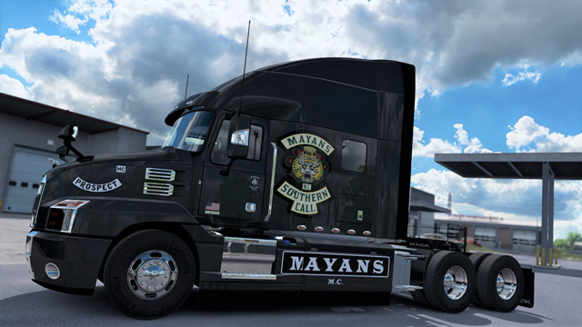 Download: Skin Mayans MC Edition for SCS Mack Anthem Metalic Paintable [American Truck Simulator]