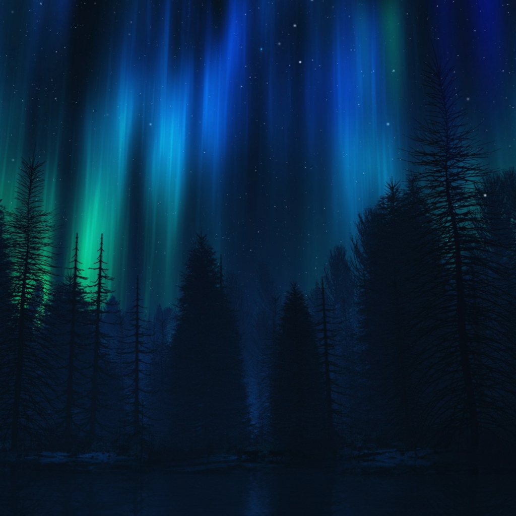 Download: Blue Green Northern Lights River Trees Nature Stars Water Night Winter [Wallpaper Engine]