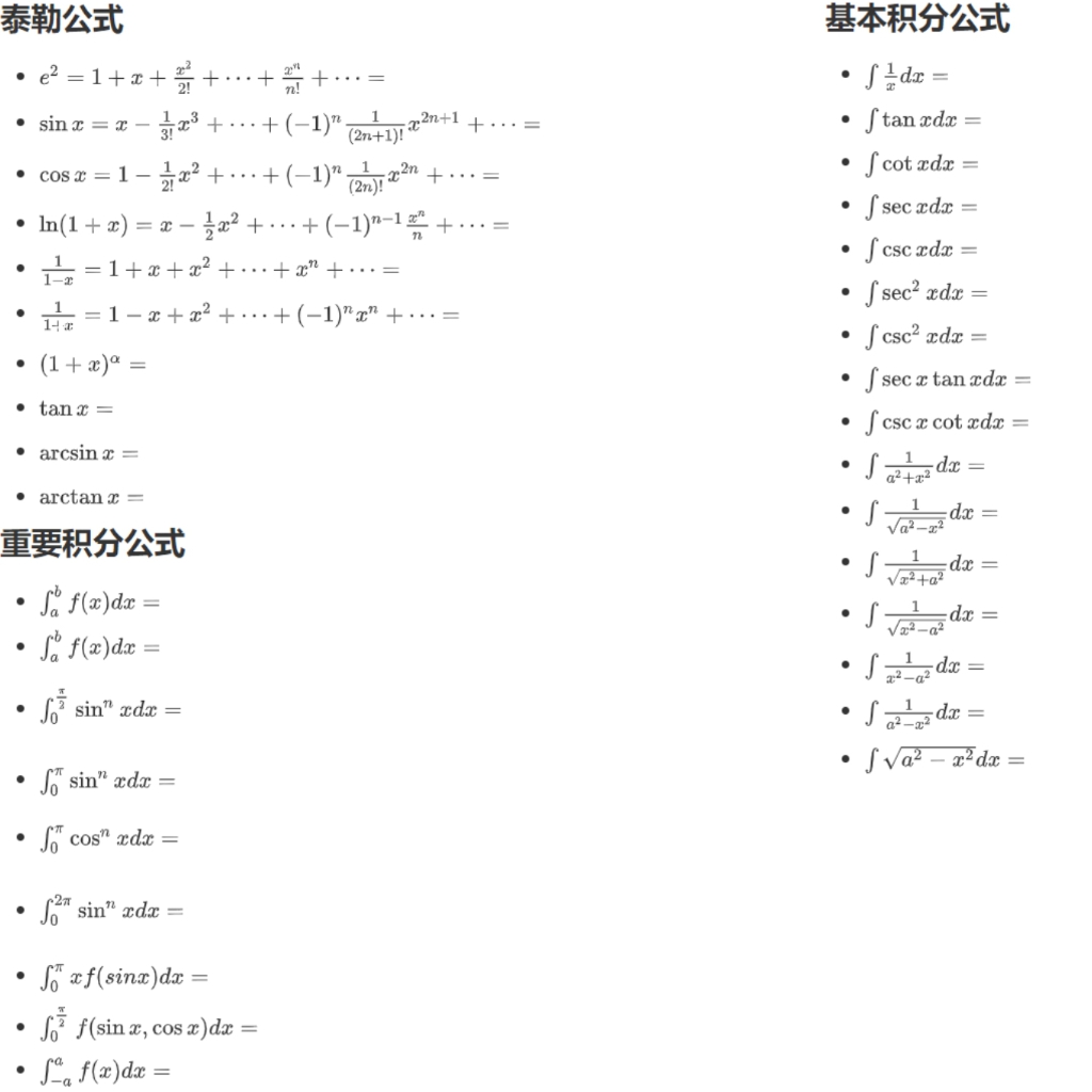 Download: 高等数学公式 考研数学公式 常用公式 泰勒公式 积分求导_Light Theme [Wallpaper Engine]