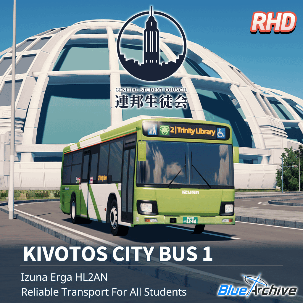 Download: Isuzu Erga Kivotos City Bus 1 (RHD) - Blue Archive [Cities: Skylines]