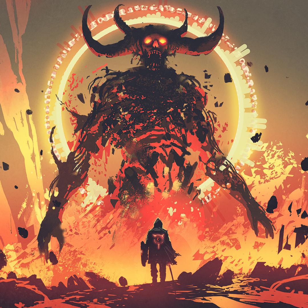 Download: knight with a sword facing the lava demon in hell [Wallpaper Engine]