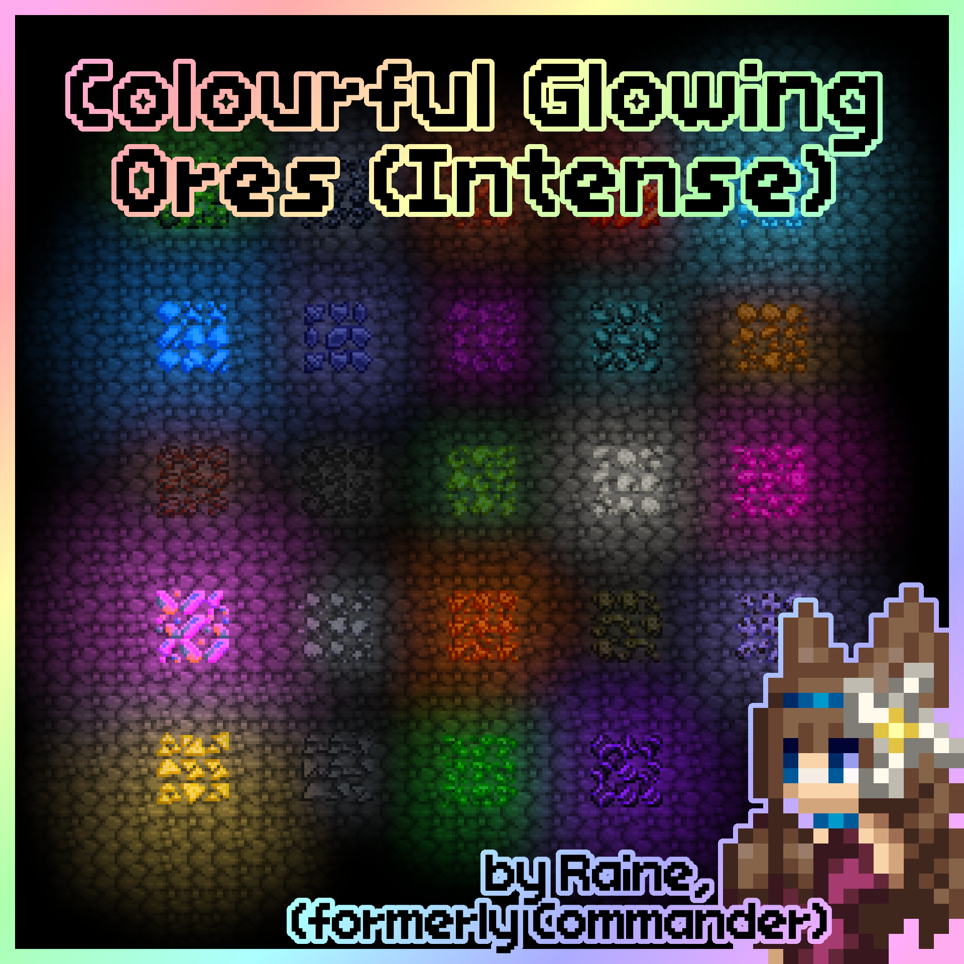 Download: Colourful Glowing Ores (Intense) [Starbound]
