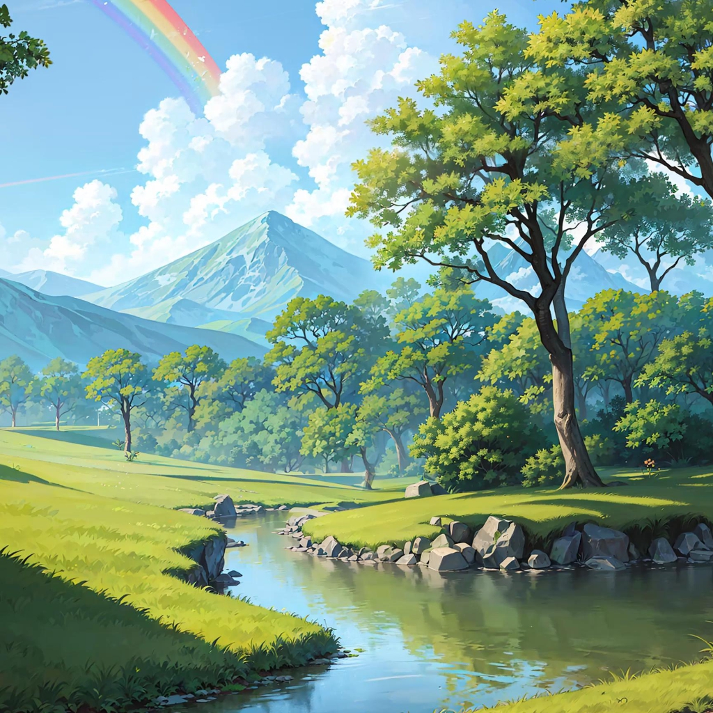 Download: 夏季绿山水彩虹云 [Wallpaper Engine]