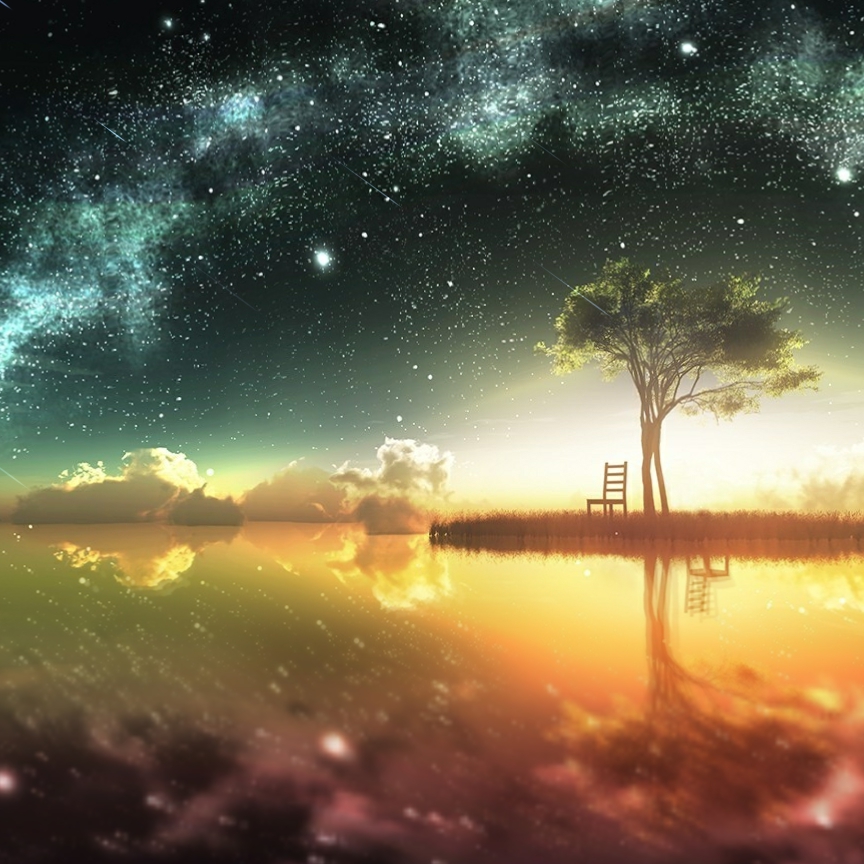 Download: fantasy-landscape-lonely-tree-reflection-stars-chair-31937 [Wallpaper Engine]