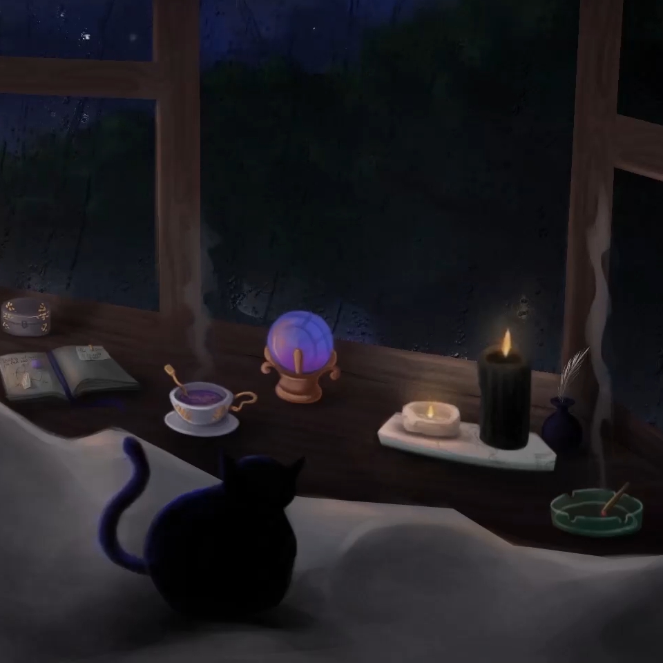 Download: Relaxing in front window ( black cat ) [Wallpaper Engine]