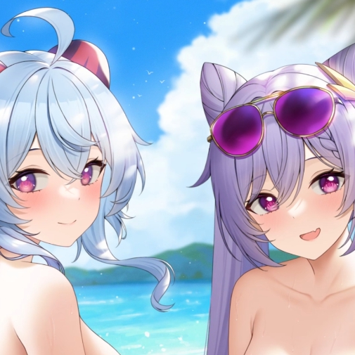 Download: ganyu and kequing beach (fukuro ko greentea) [Wallpaper Engine]