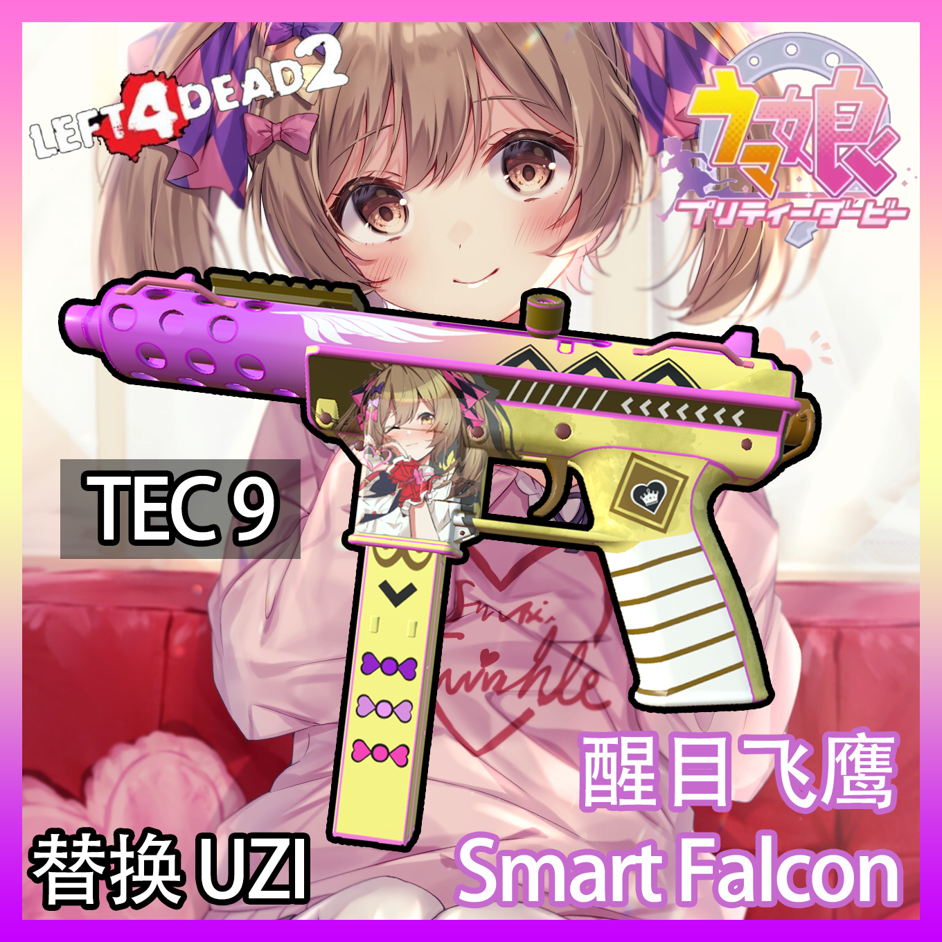 Download: 【赛马娘】醒目飞鹰 MW2022 Tec 9 替换 UZI/Umamusume Pretty Derby Smart Falcon Tec9 Deplace UZI [Left 4 Dead 2]