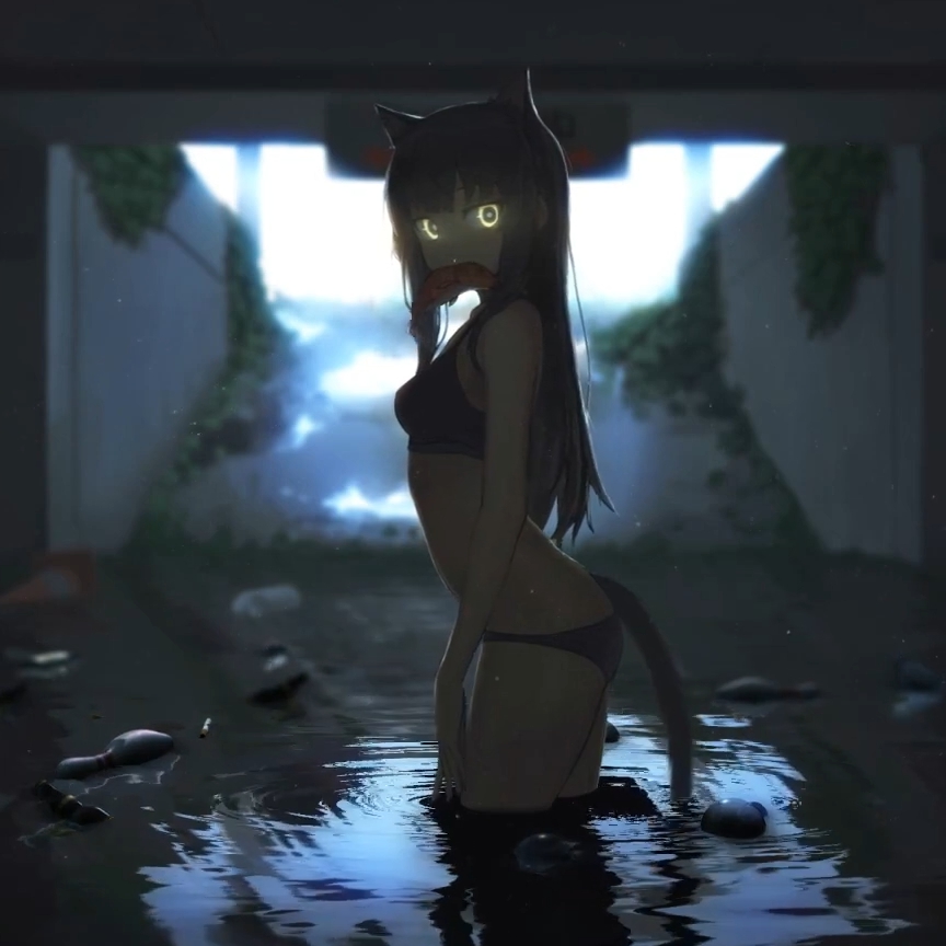 Download: Cat girl with fish in her mouth [Wallpaper Engine]
