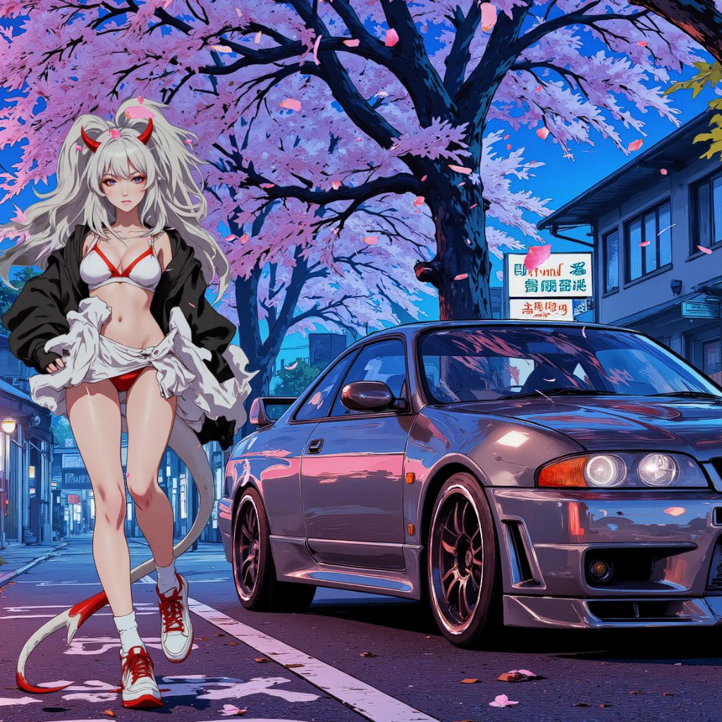 Download: Nissan Skyline GT-R R33 (1995) — Tokyo Dragon Queen - Sakura Dreamscape by ado [Wallpaper Engine]