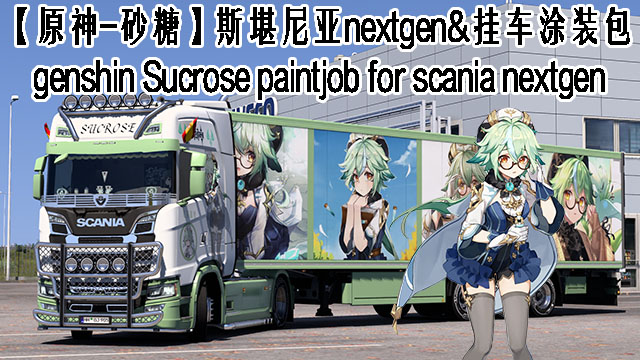 Download: 【原神-砂糖】斯堪尼亚Nextgen&挂车涂装包 Genshin Sucrose Paintjob for Scania NG and Trailers [Euro Truck Simulator 2]