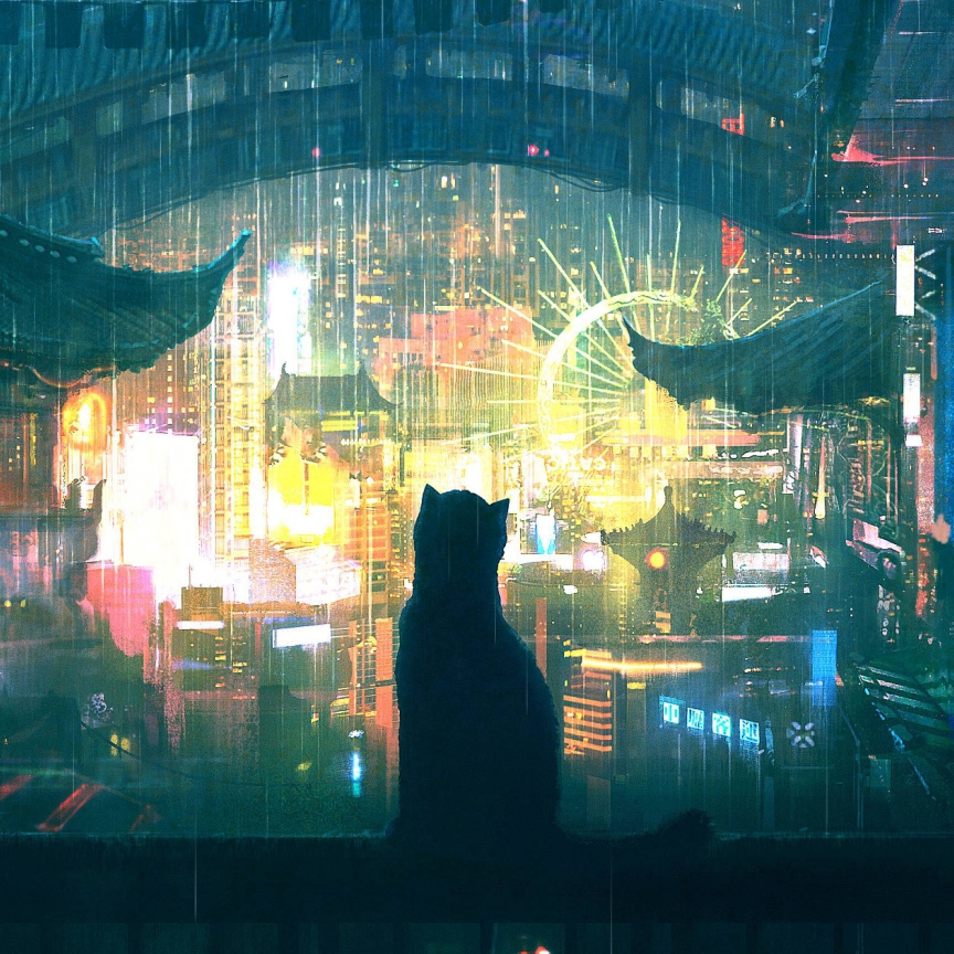 Download: Cat sitting in the rain watching the city [slower rain] [Wallpaper Engine]